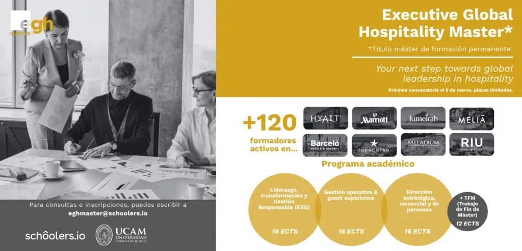 Schôolers anuncia el lanzamiento de su primer programa acreditado por una universidad: el Executive Global Hospitality Master (EGH Master), desarrollado en colaboración con la Universidad Católica San Antonio de Murcia