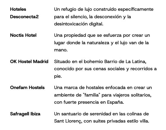 La selección global de 100 propiedades incluye destinos en Ibiza, Madrid, Soria y Extremadura, destacando a los hoteleros españoles que apuestan por la desconexión, el diseño y la comunidad.